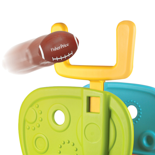 Features with a basketball hoop and a football goal post